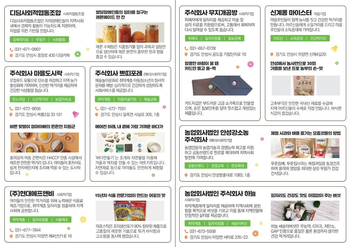 선정된 안성시 사회적경제 기업과 제품 이름을 소개합니다!