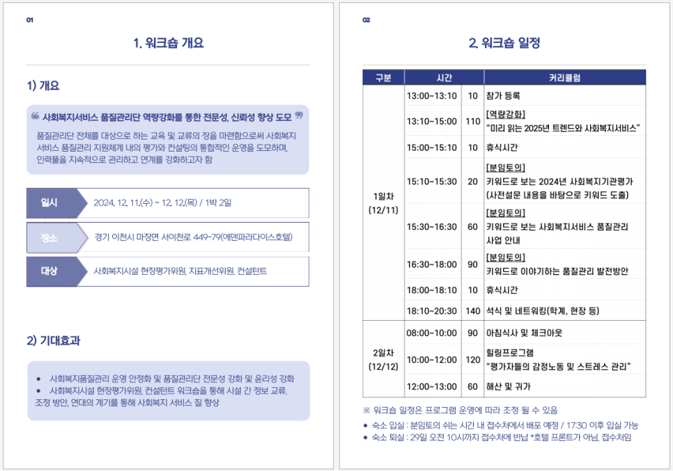 경기복지재단에서는 매년 사회복지서비스 품질관리단(평가위원, 지표개선위원, 컨설턴트)을 모시고 역량강화 워크숍을 진행합니다. 2024년에는 삼돌텍이 이 워크숍 행사를 맡아 기획하고 운영하게 되었습니다.